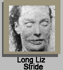 "Long Liz" was born in Gottenburg, Sweden (November 1843 ?), named Elisabeth Gustafsdotter. After becoming a prostitute, she moved to London in 1866 and married John Thomas Stride, a carpenter, from Gower Street (?), London. The Strides may have kept a coffee shop until their marriage breakdown in 1882. Long Liz was known to the local police, having had eight convictions for drunkenness before her death. She was killed at Berner Street about 1:00am. Elizabeth Stride was buried in a paupers grave in the East London cemetry.